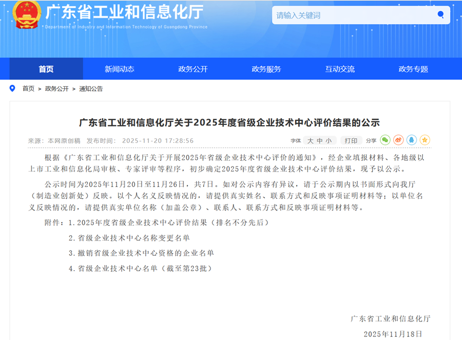 11月20日,广东省工业和信息化厅公布了2025年度省级企业技术中心评价结果。公司三家法人单位——肇庆大华农生物药品有限公司、广东温氏大华农生物科技有限公司、佛山正典生物技术有限公司均顺利通过考核,并凭借扎实的技术创新实力和卓越的成果表现,荣获“一优两良”的评价等级,充分彰显了大华农在科技创新体系建设和自主研发能力上的领先优势与雄厚积淀。