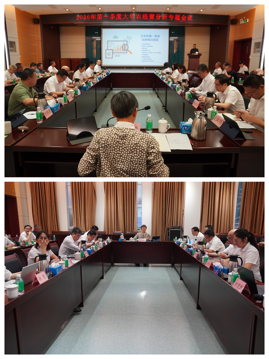 2026年4月8日,大华农在肇庆大华农1楼报告厅召开2026年一季度经营分析专题会议。会议围绕“锚定业务场景,扎根创新,突围动保业增长‘瓶颈’”主题,全面总结分析一季度经营情况,深入分析行业形势,部署下一阶段重点工作。董事长陈瑞爱,总裁班子以及大华农中级主任级及以上干部、职能部门负责人参与此次会议,公司常务副总裁王阿明主持会议。