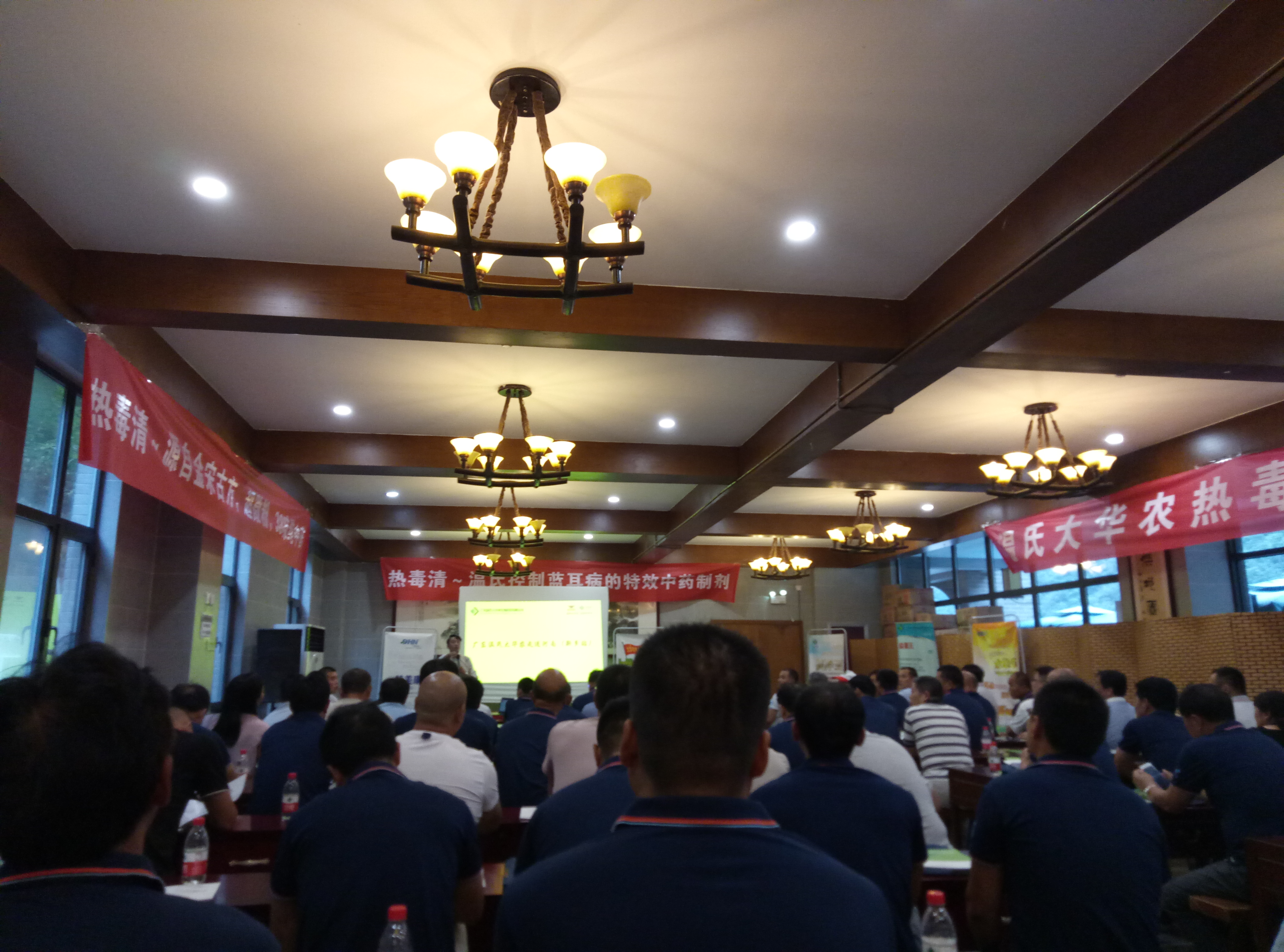 其次,化药外销部技术服务员霍慧君老师介绍了疾病防控的相关知识,同时重点介绍了大华农优势产品热毒清、替美康、金维乐、益菌王,并针对目前的蓝耳病为客户们详细介绍了使用热毒清等的组合保健方案。