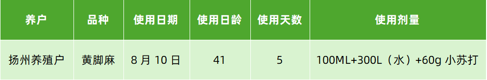扬州地区养殖户,饲养黄脚麻商品肉鸡,2栋鸡舍,每栋13000羽,37日龄开始盲肠球虫发病,使用某厂家30%的磺胺氯吡嗪钠3天,鸡群死亡率不断上升,采食量不断减少,改为使用大华农的球清爽治疗使用