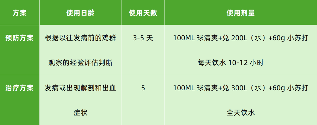 3、 在使用方案中加入小苏打是必要的,能增加鸡群的适口性和球清爽药物的饮水摄入量,以确保药量和药效。
