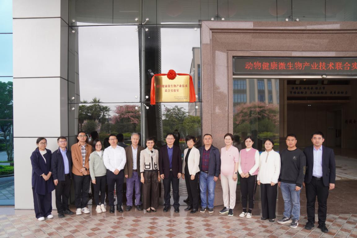 签约仪式结束后,与会代表一同前往一楼门口进行了简单而庄重的挂牌仪式,标志着动物健康微生物产业技术联合实验室正式挂牌成立。