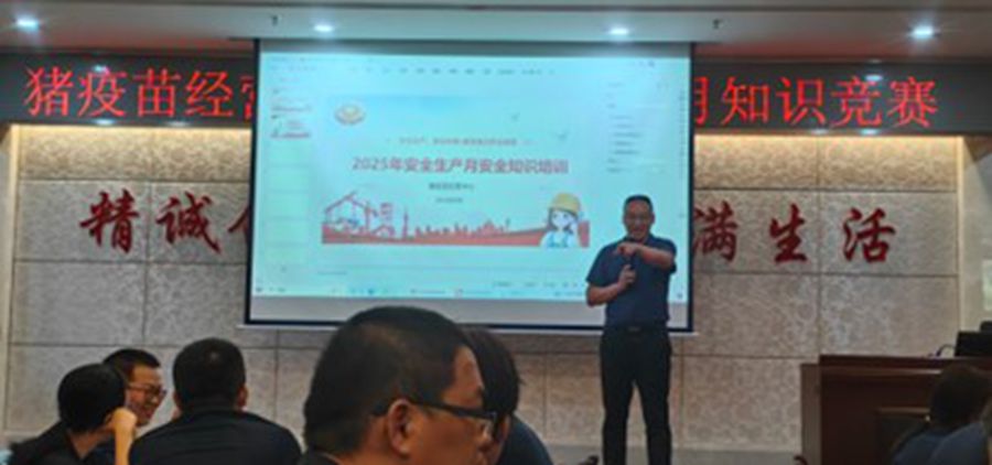 猪疫苗经营中心行政专员(兼安全员)梁祥耀作安全生产知识专题培训,培训内容包括公司安全生产要求、国内近发案例解析、学习与本公司相关安全知识,现场组织安全知识竞赛。